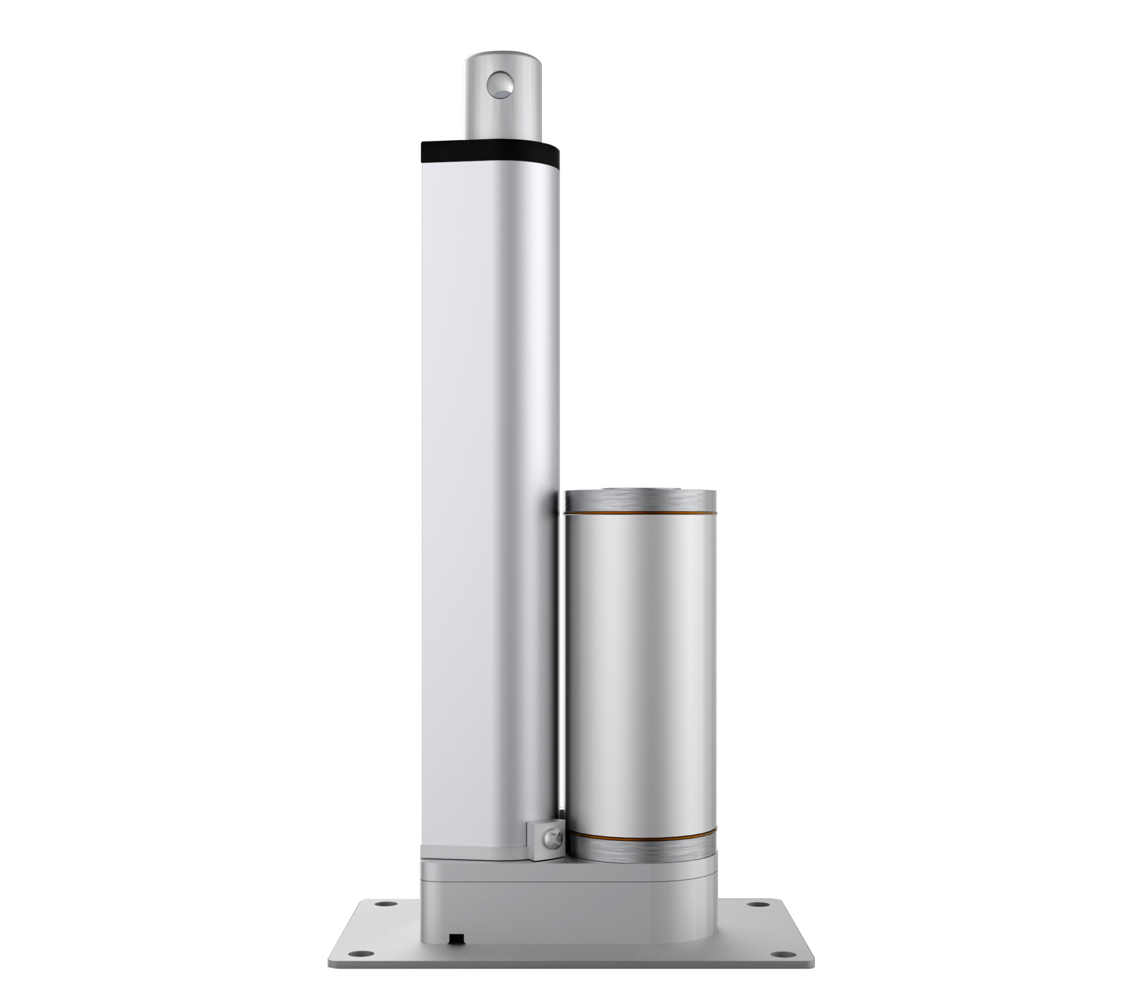平底板推桿底蓋不同于常規推桿,安裝固定面是平的,也可以用5號接頭做成上下平底板,內置上下限位,直流有刷電機驅動,推力上限2000N,額定功率30-40W,防護等級IP54,多用于升降臺、升降柱等。